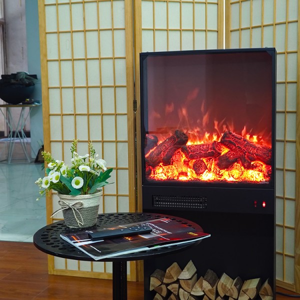 The 2D decorative fireplace has its own appearance of fireplace charcoal before starting up. After starting up, the charcoal and lighting flame of the fireplace make the whole fireplace vivid and energetic, and the flame incited on the charcoal looks lifelike.