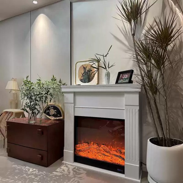The 2D decorative fireplace has its own appearance of fireplace charcoal before starting up. After starting up, the charcoal and lighting flame of the fireplace make the whole fireplace vivid and energetic, and the flame incited on the charcoal looks lifelike.