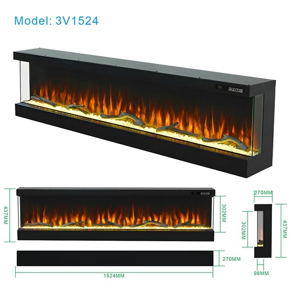 Features:Single-sided electronic fireplaces have a single visible flame display, typically on the front or the side facing the wall.